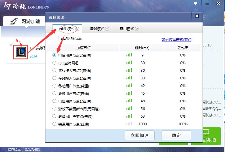 LOL台服 加速成功后,显示没有在我区域运营, 请尝试切换加速模式解决