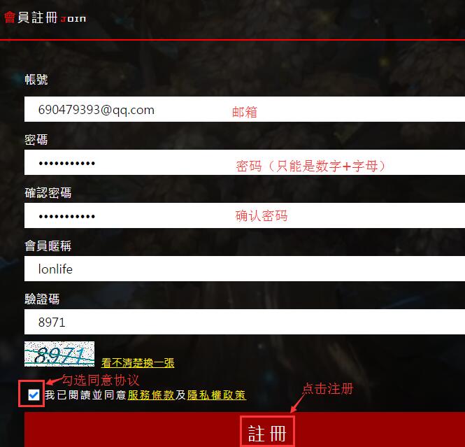 1、打开救世之树台服官网(http://tos.x2game.com.tw/),点击右上角的“注册”按钮,进入注册页面。