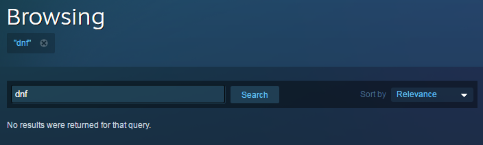 1、打开Steam官网(http://store.steampowered.com/),在搜索中查找DNF这款游戏,发现找不到。