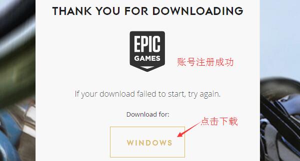 3、提示注册账号成功,点击“WINDOWS”下载游戏。