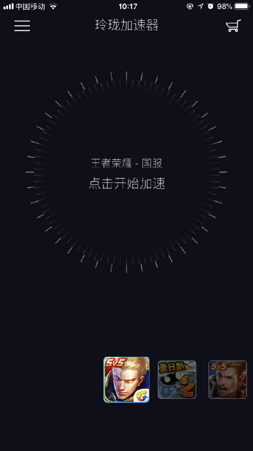 2、打开手游加速器,添加一款游戏,并启动加速