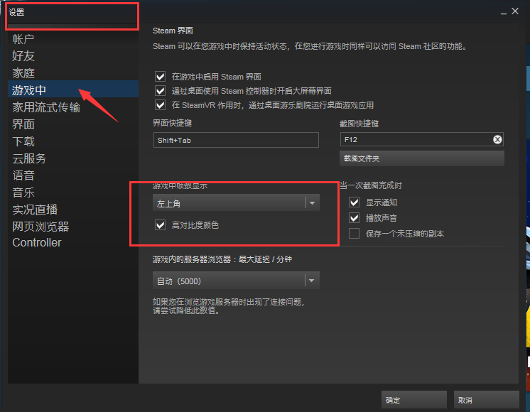 在界面找到:-设置-游戏中-在游戏中帧数显示-左上角,并勾选高对比度颜色。