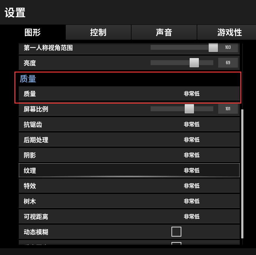 进入游戏,打开游戏设置,将‘设置-图形-质量-质量’一栏调成:非常低